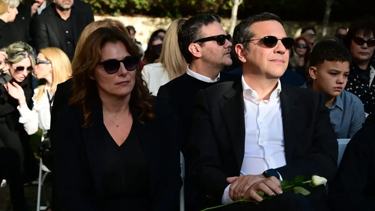 Ο Αλέξης Τσίπρας, με την Μπέττυ Μπαζιάνα και τα παιδιά τους έφτασαν στην Πλατεία Ελευθερίας για να αποτίσουν φόρο τιμής στον Αλέκο Φλαμπουράρη.