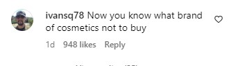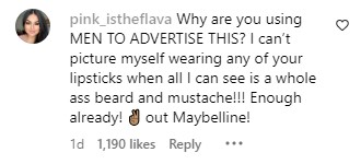 Η λεζάντα υποδηλώνει ότι ο Vita – που έχει 49.000 ακόλουθους και χρησιμοποιεί τις αντωνυμίες «she/he/they» είναι συνεργάτης της Maybelline και σχεδόν 2.000 σχόλια δείχνουν ότι πολλοί καταναλωτές δεν είναι ευχαριστημένοι με τη διαφήμιση προχωρώντας σε αισχρά ομοφοβικά σχόλια.