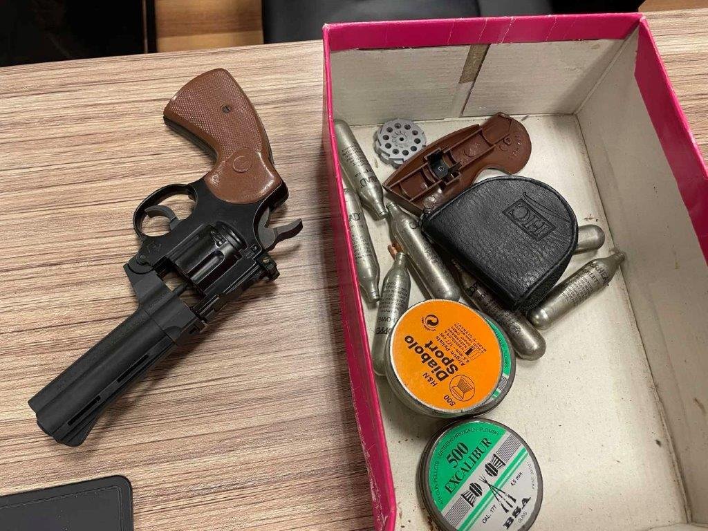 Στις έρευνες που πραγματοποιήθηκαν βρέθηκαν συνολικά και κατασχέθηκαν, 3 πιστόλια με 3 γεμιστήρες, αεροβόλο πιστόλι με αμπούλες προωθητικού αερίου, 2 μαχαίρια, μεταλλικό ρόπαλο, 5 κινητά τηλέφωνα, καθώς και 2 αυτοκίνητα και μοτοσυκλέτα τα οποία είχαν χρησιμοποιηθεί ως μέσα μετάβασης και διαφυγής.