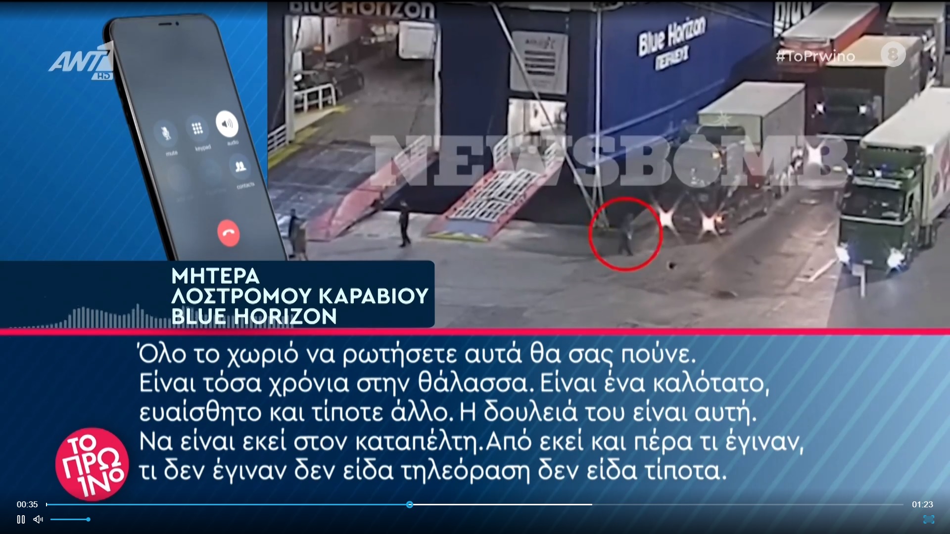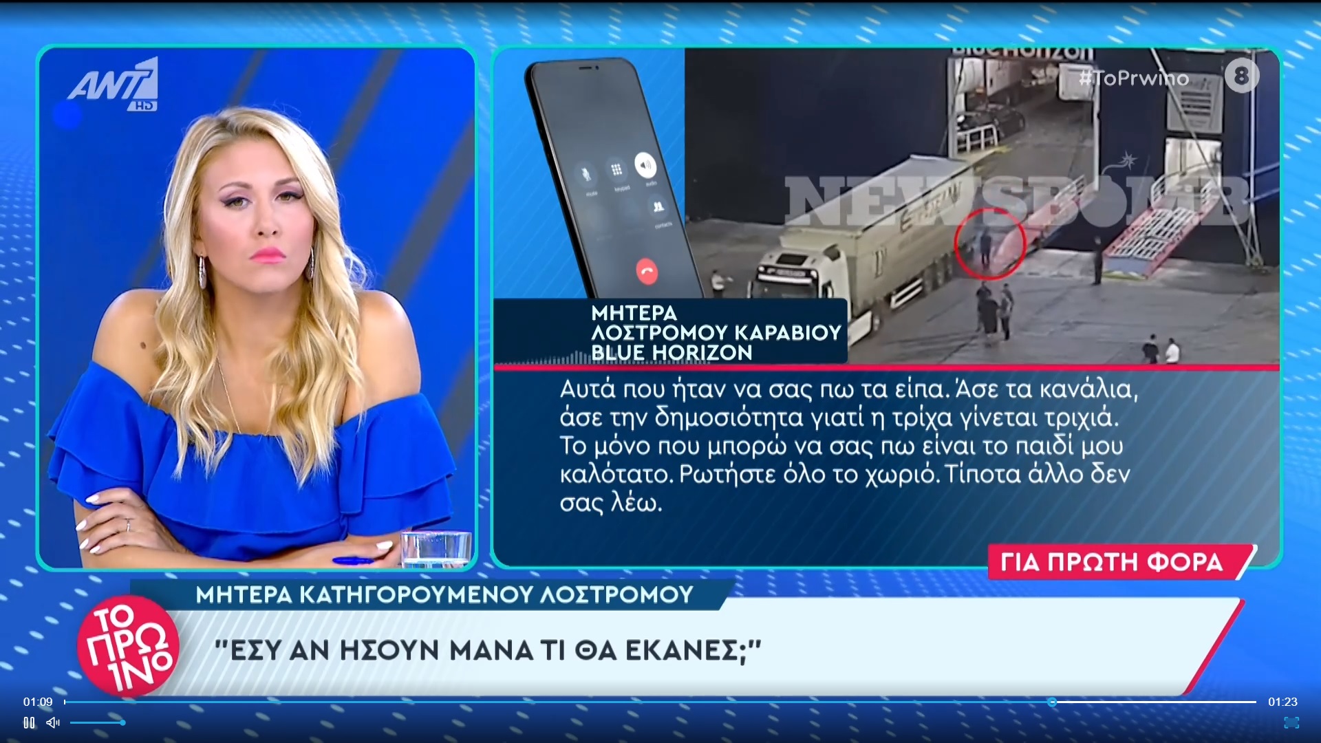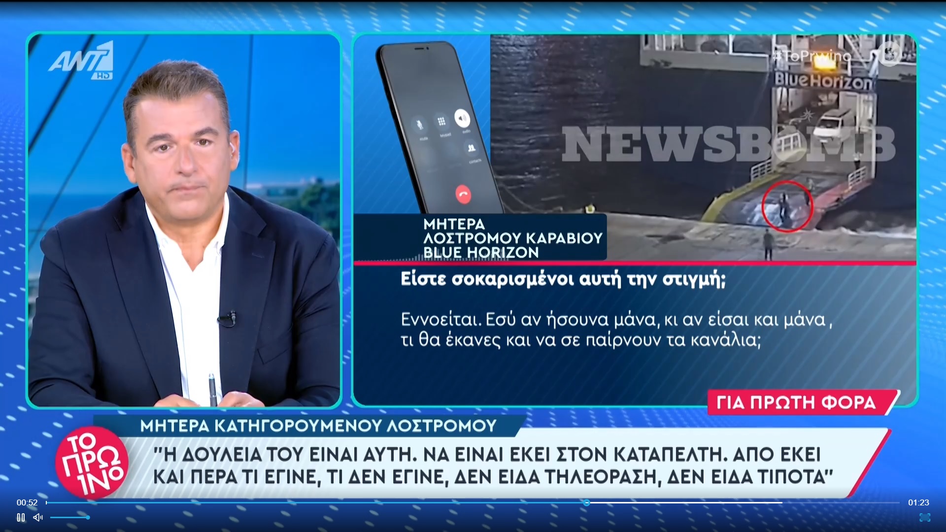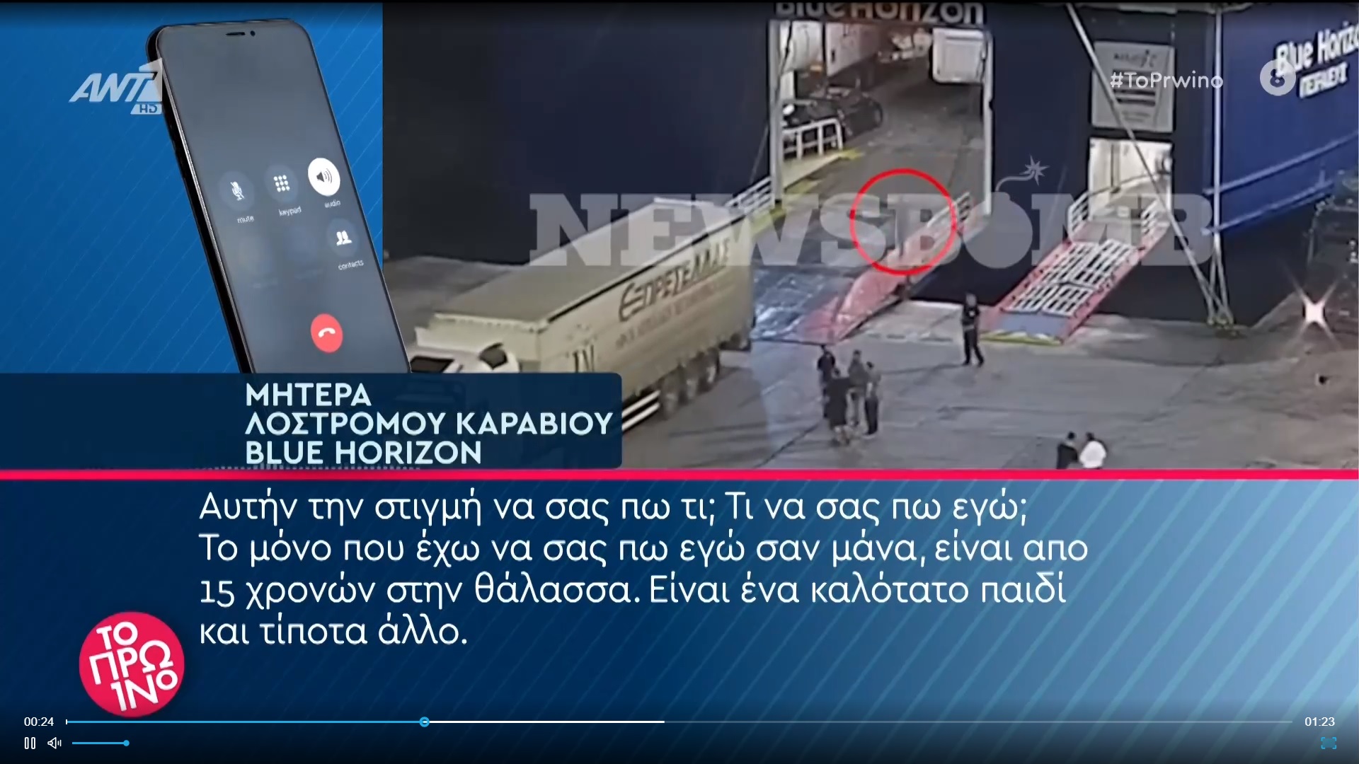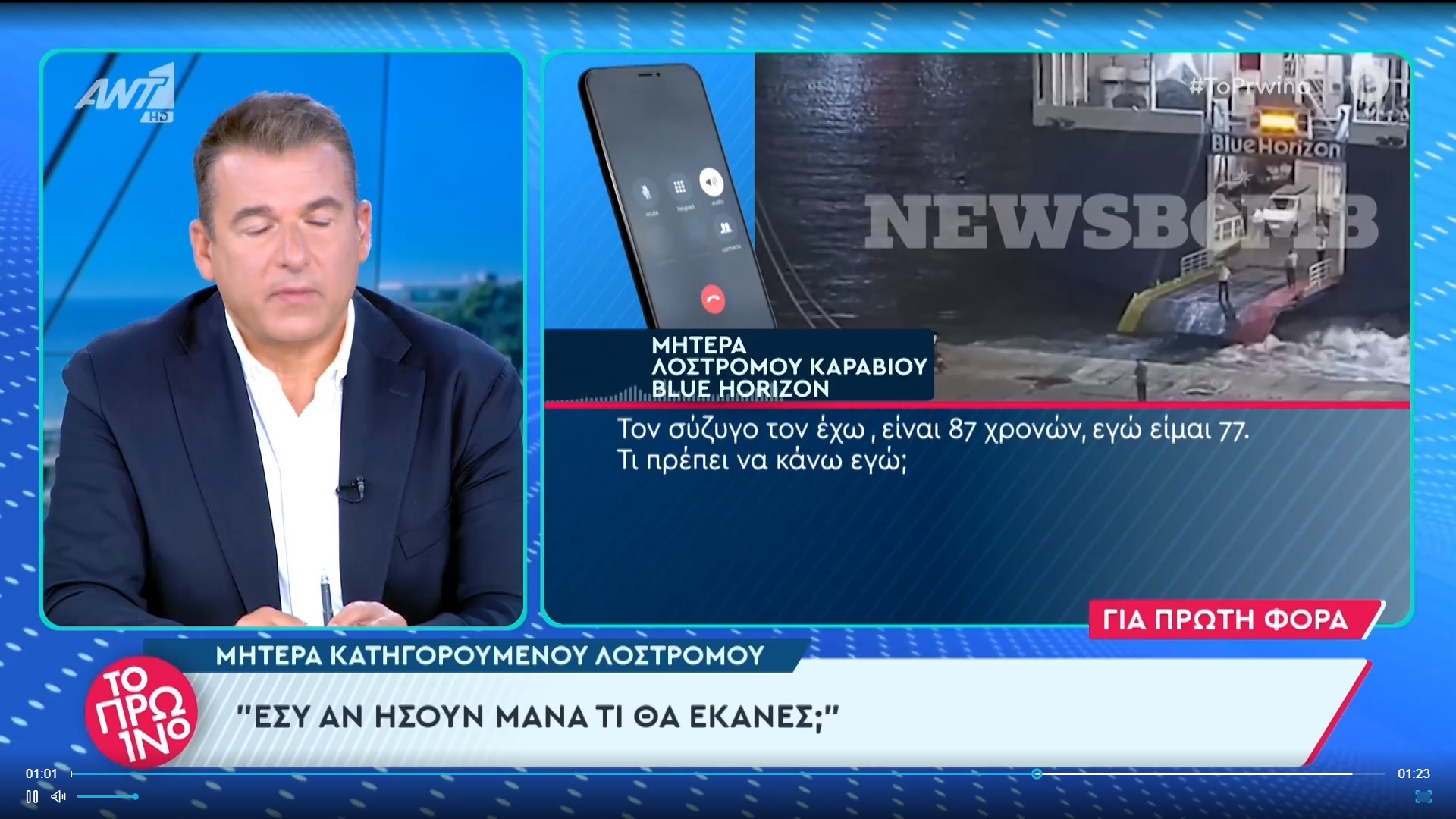 Η μητέρα του κατηγορούμενου λοστρόμου από το Blue Horizon και η θεία του βρέθηκαν στον αέρα του ΑΝΤ1, βρισκόμενες σε κατάσταση βαθιάς θλίψης . Αντιμετώπιζαν με ανείπωτο σοκ τα δραματικά γεγονότα που διαδραματίστηκαν στα μοιραία λεπτά, τα οποία άλλαξαν την πορεία της ζωής τους και της οικογένειάς τους. Σε αυτή τη δύσκολη στιγμή, προσπαθούσαν να καταλάβουν την ακριβή φύση της τραγωδίας και να βρουν απαντήσεις στα ανεξήγητα.