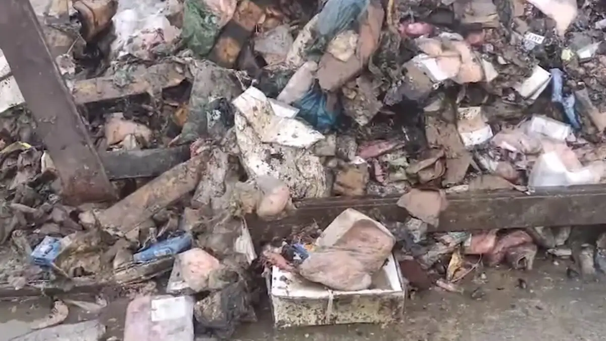 Πρόκειται για κρέατα, ψάρια, συσκευασμένα τρόφιμα ζωικής προέλευσης, πλαστικά και άλλα υλικά τα ήταν μέσα στο κατάστημα που κάηκε ολοσχερώς, απορρίφθηκαν και ενταφιάστηκαν στο προαύλιο της εταιρείας, χωρίς καμία αδειοδότηση ή τήρηση περιβαλλοντικών κανόνων.